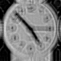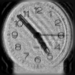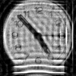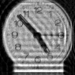 In my earlier experiments with this clock image I allowed myself the luxury of having a large dark background around the clock to minimise boundary ringing effects. In real life, the boundary problem is not so obligingly attenuated and methods to overcome boundary effects are an important aspect of practical deconvolution algorithms. For this reason I now use a cropped version of the blurred image as input to the algorithms, ensuring that the crop rectangle cuts through part of the clock image to cause high contrast boundary transitions. The deconvolution algorithms have been extensively updated to handle asymmetric PSFs and I also employ advanced boundary ringing reduction technology. Boundary ringing should not be confused with the ringing due to high contrast structures intrinsic to the image - one solition to this problem is also shown below.